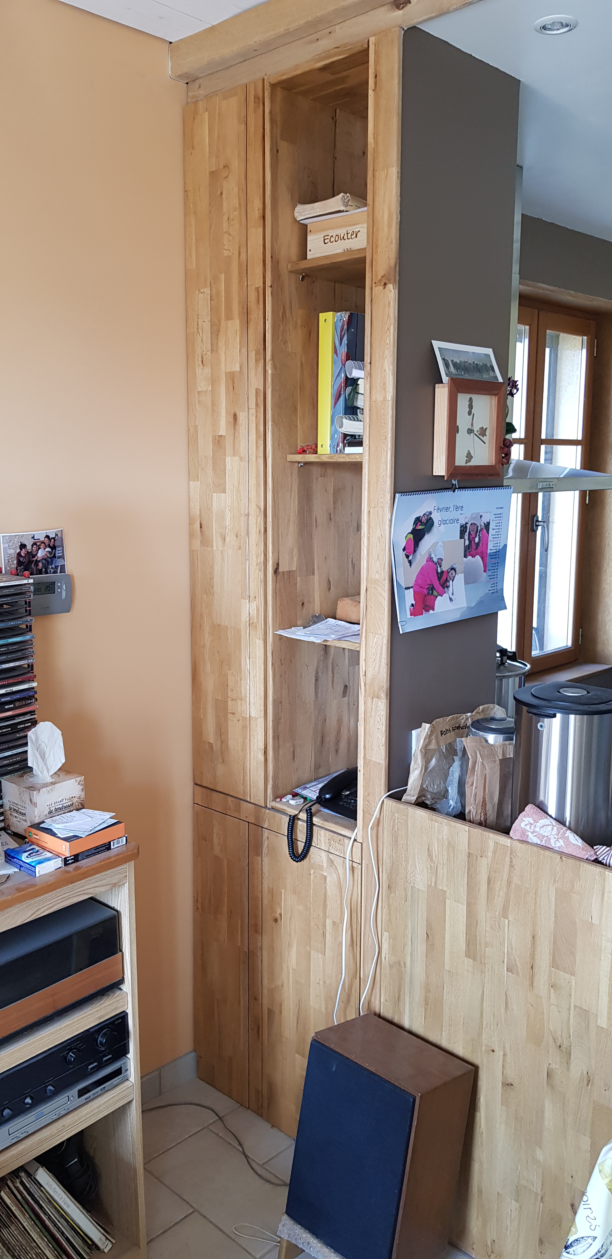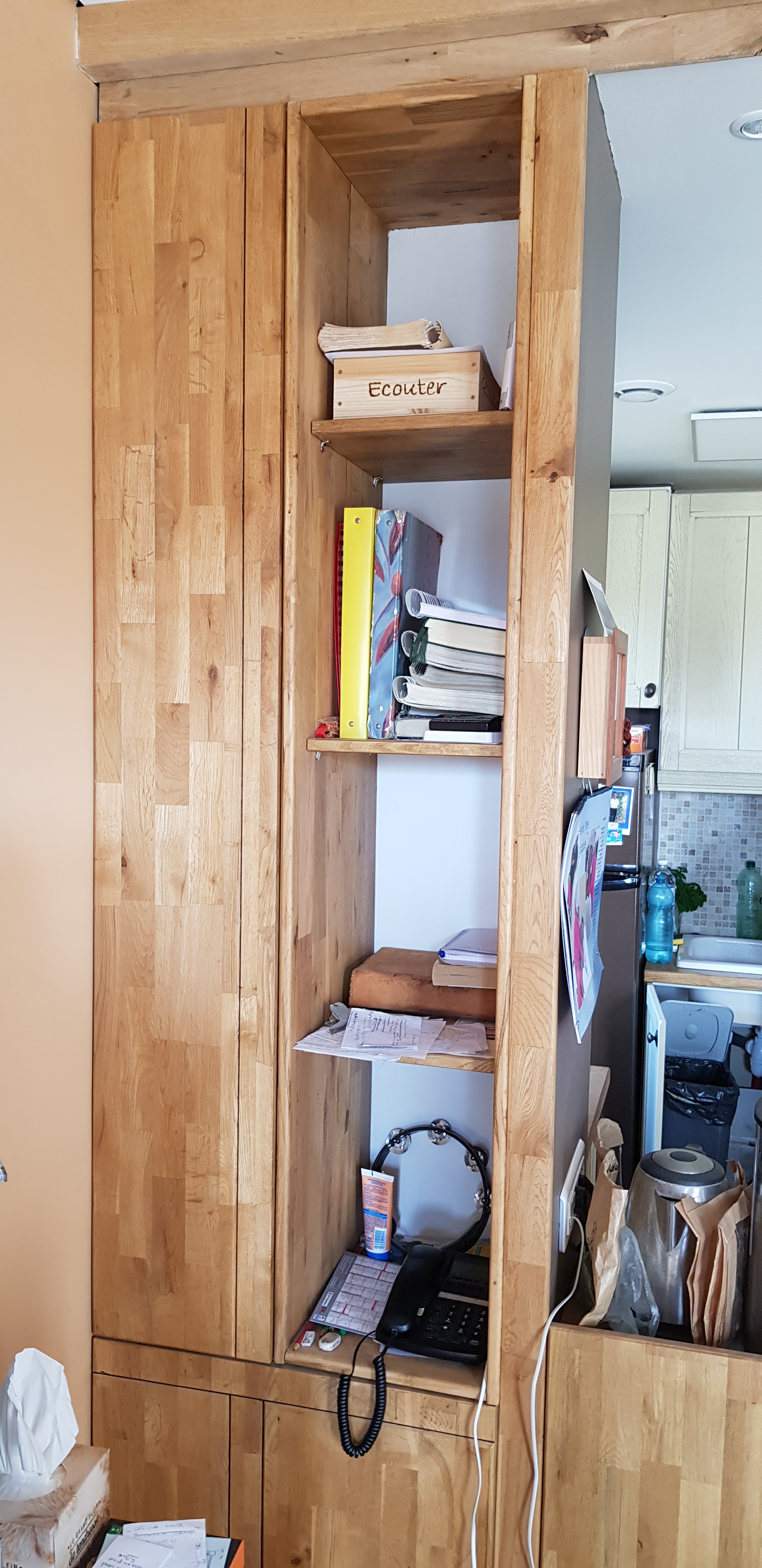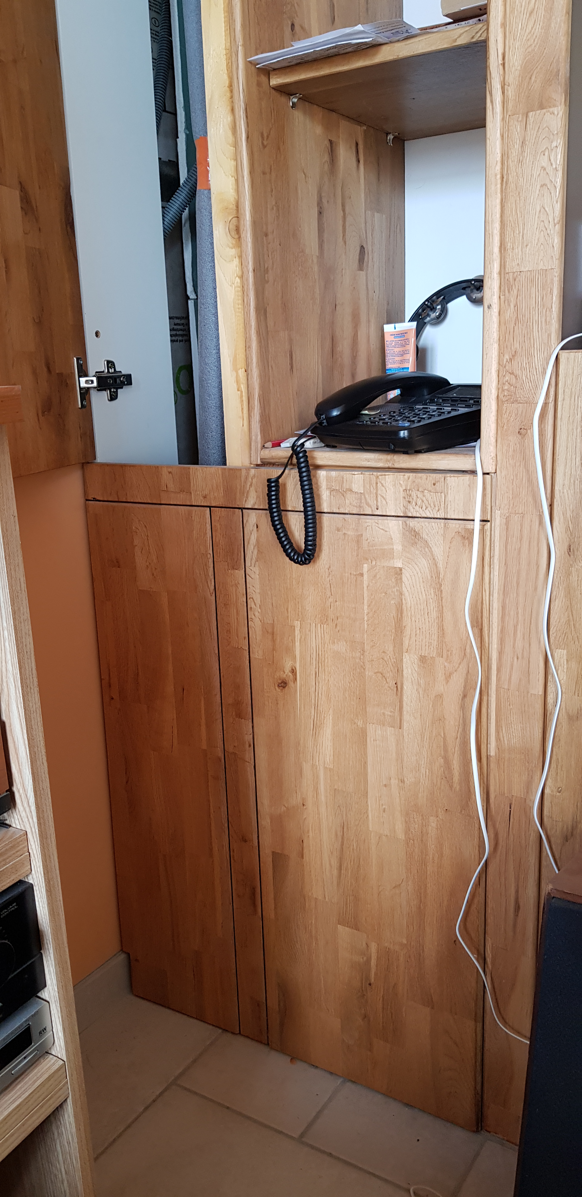 Portes de placards assorties et bibliothèque pour dissimuler les tuyaux des colonnes montante et descendante d'eau et la bouteille de gaz